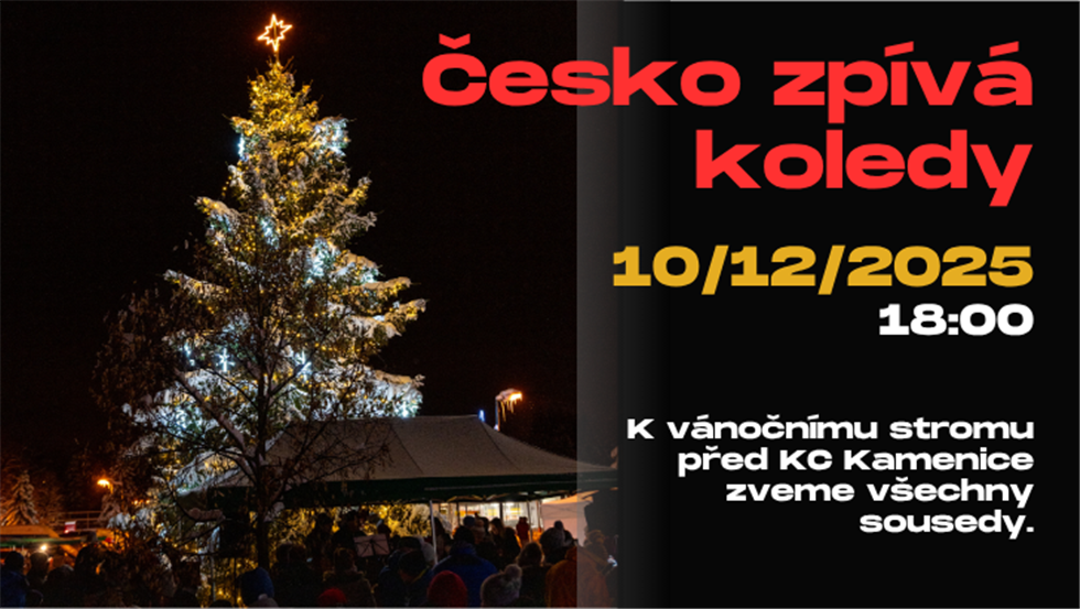 termín: 10. 12. 2025, 18:00místo: u kamenického vánočního stromu (v případě špatného počasí vestibul KC Kamenice)