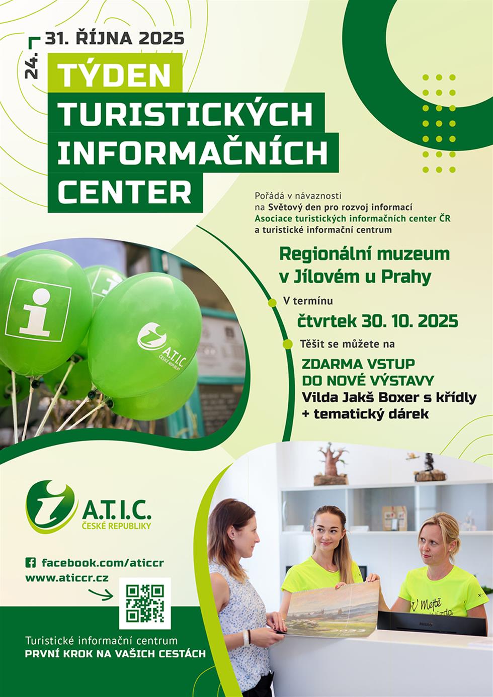 Připojujeme se k celostátní akci, která slaví práci infocenter napříč republikou! Navštivte nás a odneste si drobný dárek, úsměv i nové tipy na výlety po regionu. V rámci akce se můžete těšit na vstup ZDARMA do nové výstavy s názvem Vilda Jakš - Boxer s křídly.