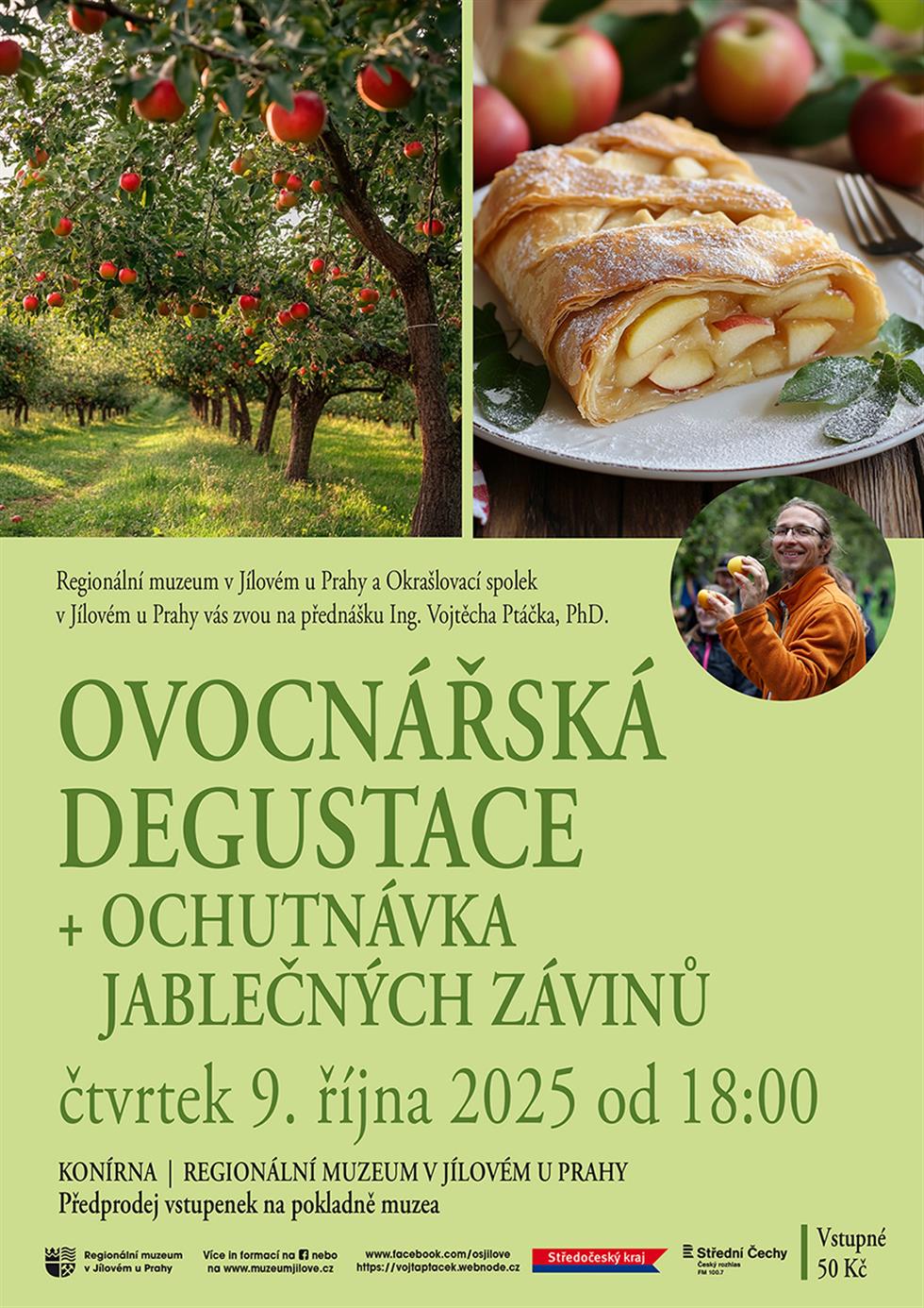 Odborná přednáška Ing. Vojtěcha Ptáčka, Ph.D., specialisty na ovocné stromy, o jílovských ovocných odrůdách. Dozvíte se zajímavosti o místních odrůdách ovoce a chybět nebude ani ochutnávka jablečných závinů.